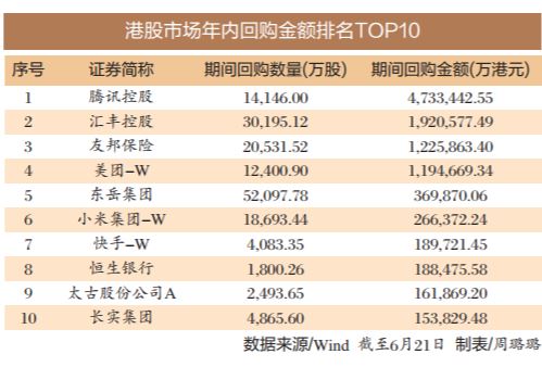 梳理發(fā)現(xiàn),回購金額排名居前的個股中,以騰訊控股、匯豐控股、友邦保險、美團(tuán)-W、小米集團(tuán)-W等金融和科技行業(yè)“領(lǐng)頭羊”為主。分析人士稱,港股回購潮洶涌,一定程度上傳遞出市場對港股未來走勢的信心。