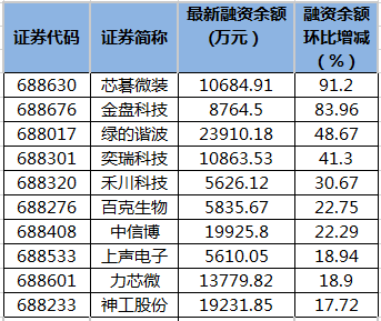 芯碁微裝等7只科創(chuàng)板股融資余額增幅超20%