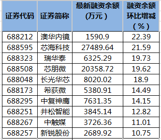 澳華內(nèi)鏡等10只科創(chuàng)板股融資余額增幅超10%