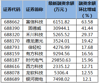 富信科技等16只科創(chuàng)板股融資余額增幅超10%