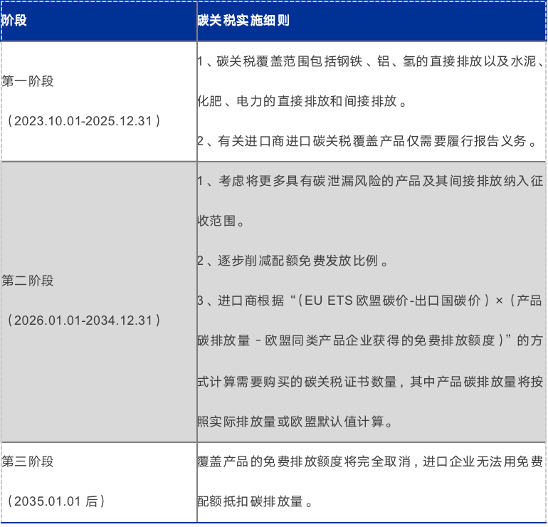 表2:歐盟碳關(guān)稅分三階段實(shí)施,影響范圍將逐步擴(kuò)大