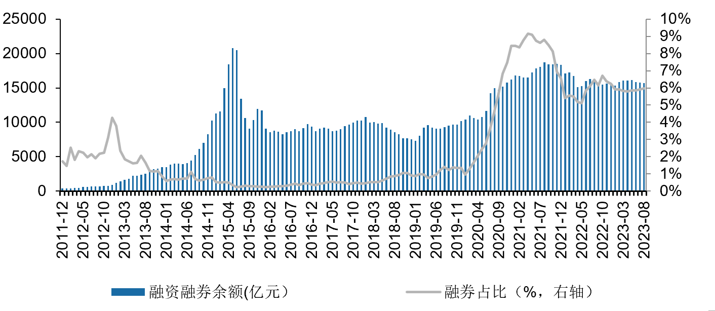 陳福表示,融券業(yè)務(wù)占比在我國兩融業(yè)務(wù)結(jié)構(gòu)中長期偏低,即便科創(chuàng)板試點并逐漸推廣“約定申報融券交易機(jī)制”以來,融券占比雖有提升,但仍不足10%。截至2023年8月末,我國兩融余額15712億元,其中融券占比僅6%,而美國融資融券余額8351.74億美元,其中融券占比高達(dá)17%,占比高位時期能達(dá)到40%-50%!耙虼,相比海外成熟市場,我國融券業(yè)務(wù)仍有較大發(fā)展空間。”