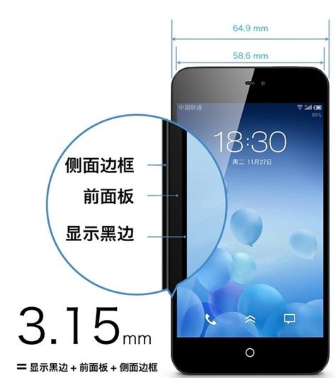 魅族MX2另一個(gè)讓小米2S望塵莫及的就是其采用了超窄邊框設(shè)計(jì),MX2采用的是3.15mm超窄邊框,超越了前代手機(jī)MX成為了當(dāng)時(shí)邊框最窄的手機(jī)。在機(jī)身寬度變化不大的情況下,以超窄邊框的優(yōu)勢(shì)使屏幕尺寸變大,增強(qiáng)了視覺沖擊力。