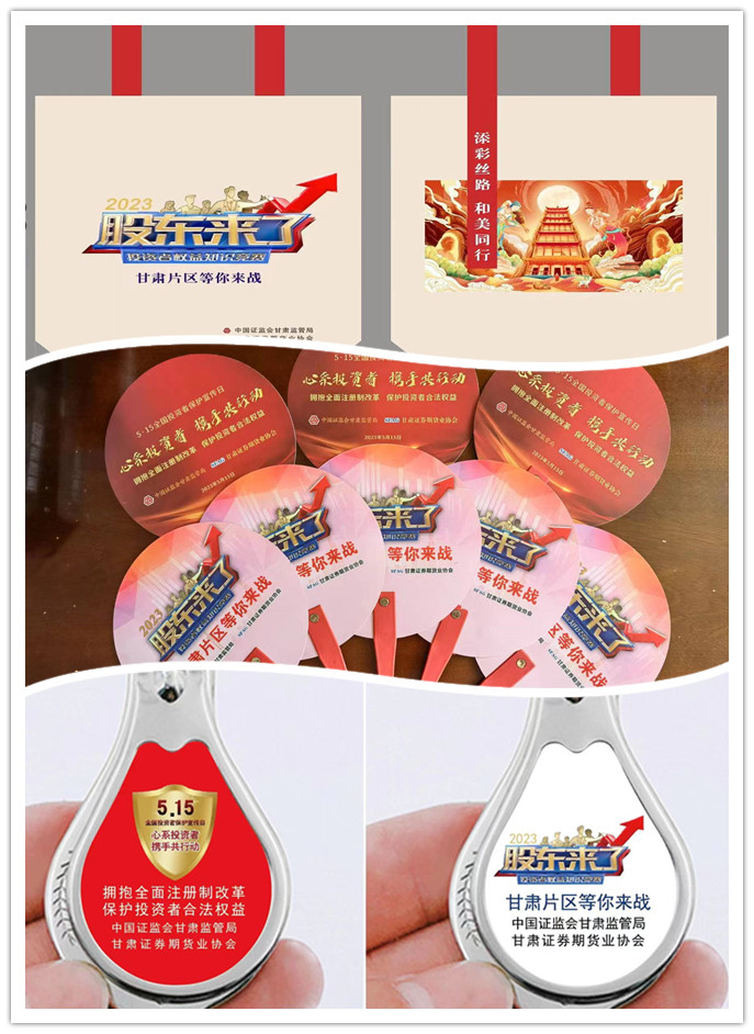 物料保障,制作多種投教產品。印有5.15投教主題和《股東來了》元素的文化扇、指甲刀、撲克牌、環(huán)保袋等實物投教產品,親民而又實用,通過貼近生活、寓教于樂的形式傳遞理性投資理念與輸出投教知識!