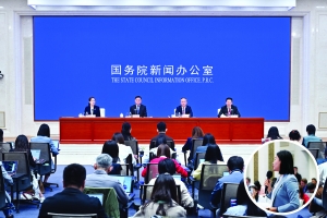 右下圖:中國證券報記者在新聞發(fā)布會現(xiàn)場提問。 圖片來源:國新辦網(wǎng)站