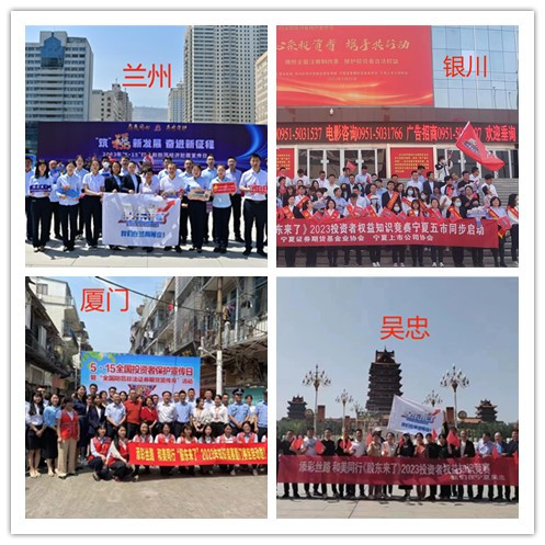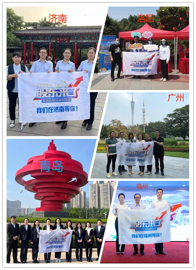 同日,福建賽區(qū)開(kāi)展轄區(qū)動(dòng)員會(huì),轄區(qū)近200位證券期貨分支機(jī)構(gòu)負(fù)責(zé)人參會(huì),同時(shí)舉行了《股東來(lái)了》點(diǎn)亮福州儀式;山東賽區(qū)在省會(huì)濟(jì)南泉城廣場(chǎng)、著名景點(diǎn)趵突泉開(kāi)展打卡宣傳,讓競(jìng)賽活動(dòng)貼近百姓生活;河南賽區(qū)廣泛動(dòng)員轄區(qū)機(jī)構(gòu)積極參賽,中原證券走進(jìn)上市公司、走進(jìn)社區(qū)、走進(jìn)高校等活動(dòng)有序開(kāi)展,鄭州、洛陽(yáng)2市城市圈同步點(diǎn)亮;廣東賽區(qū)積極響應(yīng),召開(kāi)啟動(dòng)儀式,點(diǎn)亮地標(biāo)建筑廣州塔,用最美霓虹傳遞大投保精神;廣西賽區(qū)組織投資者及證券從業(yè)人員走進(jìn)國(guó)海證券、安信證券投資者教育基地,用一堂投教精品課點(diǎn)亮城市圈;寧夏賽區(qū)聯(lián)合南京證券投資者教育基地、轄區(qū)各證券期貨經(jīng)營(yíng)機(jī)構(gòu)圍繞“添彩絲路 和美同行 股東來(lái)了 我們來(lái)了”活動(dòng)主題,同時(shí)點(diǎn)亮銀川、吳忠、固原、中衛(wèi)、石嘴山5市,將《股東來(lái)了》(2023)火種傳遍賽區(qū);廈門(mén)賽區(qū)舉辦賽區(qū)啟動(dòng)儀式,誠(chéng)邀投資者進(jìn)行掃碼答題,提供現(xiàn)場(chǎng)咨詢和答疑解惑,營(yíng)造全民學(xué)習(xí)金融知識(shí)的氛圍,引導(dǎo)投資者“全面知權(quán)、積極行權(quán)、依法維權(quán)”;青島賽區(qū)結(jié)合轄區(qū)“投資者教育和保護(hù)百日講壇”品牌活動(dòng)積極開(kāi)展活動(dòng)宣傳推廣,并在城市地標(biāo)的五四廣場(chǎng)點(diǎn)亮城市圈。