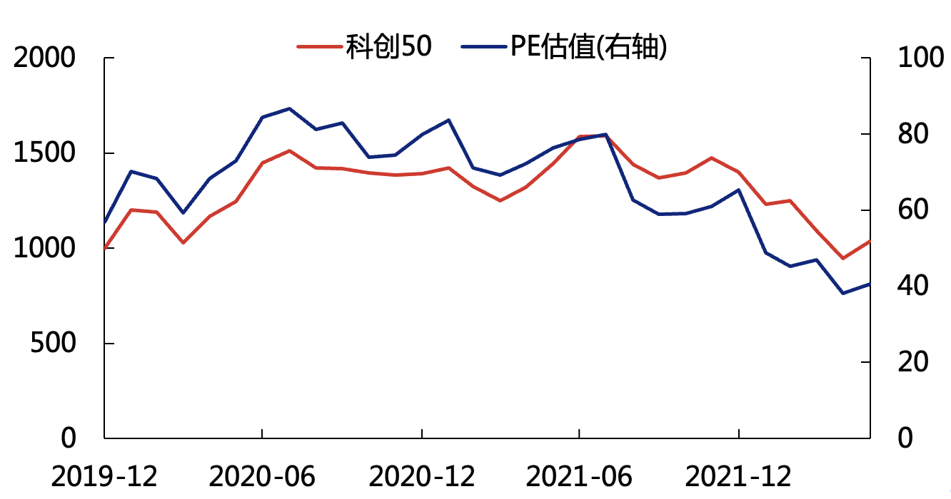 而今天,科創(chuàng)50指數(shù)從2021年8月初的1639點,一度跌至2022年4月的853點,接近腰斬。即便5月至今有所反彈,但仍有接近4成的科創(chuàng)板個股股價低于發(fā)行價,大量公司都已經經歷了甚至50%以上的回撤幅度。從估值層面上看,同樣已是科創(chuàng)板開板以來最低水平,科創(chuàng)50指數(shù)40倍左右的PE估值,已低于創(chuàng)業(yè)板指49倍左右的水平。