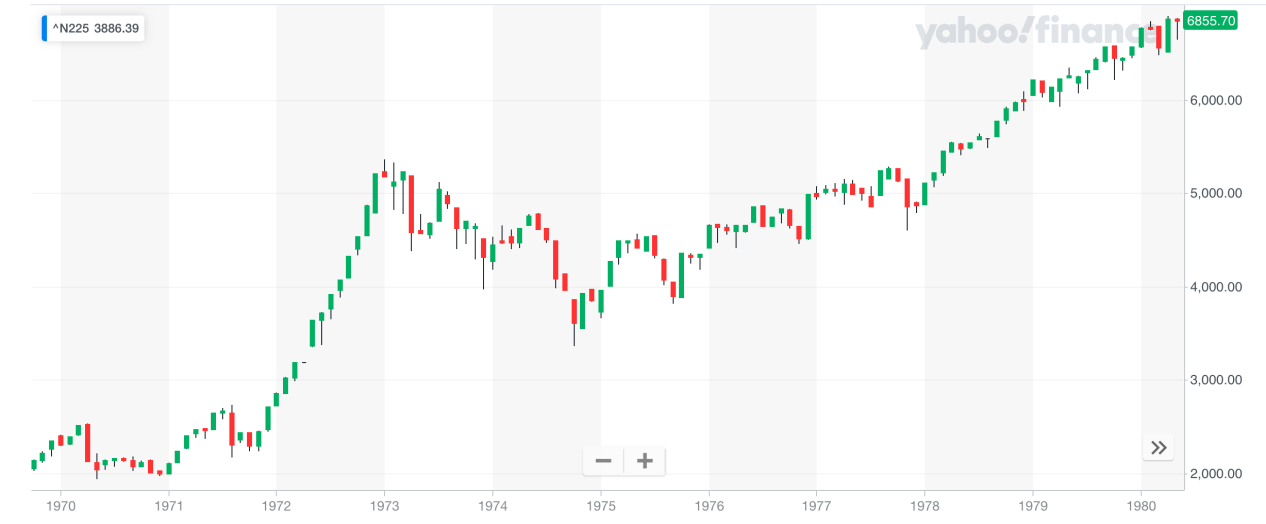以下是日經225指數(shù)1970-1980年走勢圖: