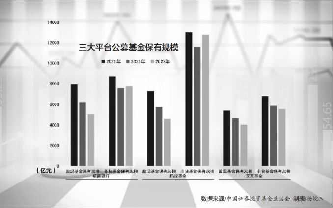 2023年,螞蟻基金實(shí)現(xiàn)凈利潤(rùn)3.5億元,同比下降35.63%;招商銀行代理基金收入51.79億元,同比下降21.52%;天天基金的基金銷售額達(dá)1.55萬億元,近三年首度銷售額跌破2萬億元,實(shí)現(xiàn)營(yíng)收36.37億元,同比下降16.14%。