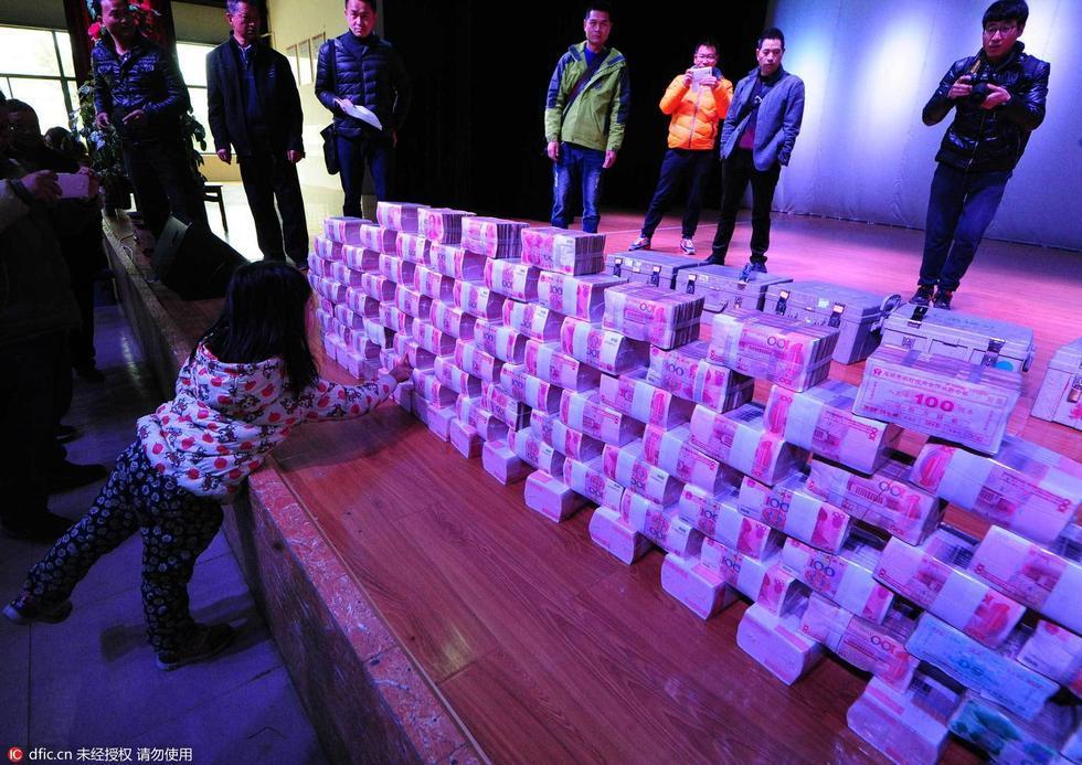 昆明村子當(dāng)眾分紅1000萬 現(xiàn)金堆“錢山”