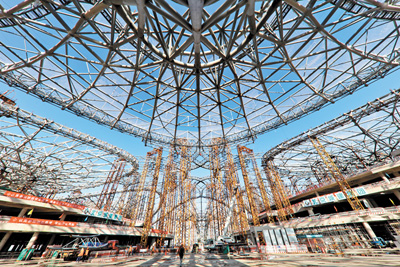 北京新機場航站樓鋼結(jié)構(gòu)封頂。