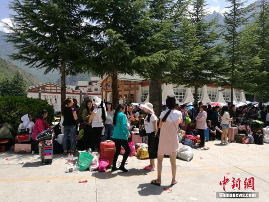 8月8日21時(shí)19分在四川阿壩州九寨溝縣發(fā)生7.0級(jí)地震,震源深度20千米。圖為等待撤離的游客。安源 攝