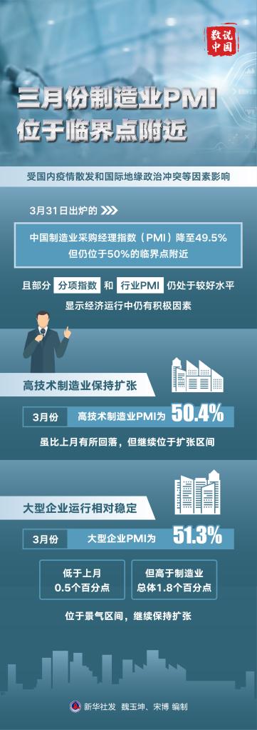 受國內疫情散發(fā)和國際地緣政治沖突等因素影響,31日出爐的中國制造業(yè)采購經理指數(shù)(PMI)降至49.5%,但仍位于50%的臨界點附近,且部分分項指數(shù)和行業(yè)PMI仍處于較好水平,顯示經濟運行中仍有積極因素。