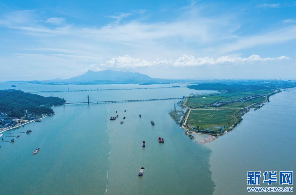 鄱陽湖匯入長江口的全景。新華網(wǎng)發(fā)(江西省港口集團(tuán)供圖)