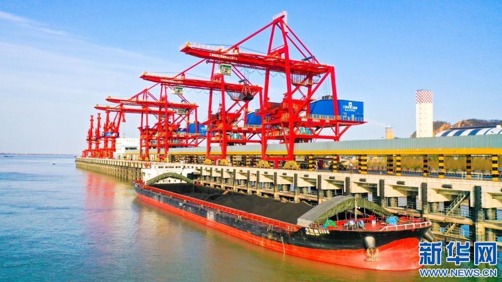 船舶在九江磯山公用碼頭卸載煤炭。新華網(wǎng)發(fā)(江西省港口集團(tuán)供圖)