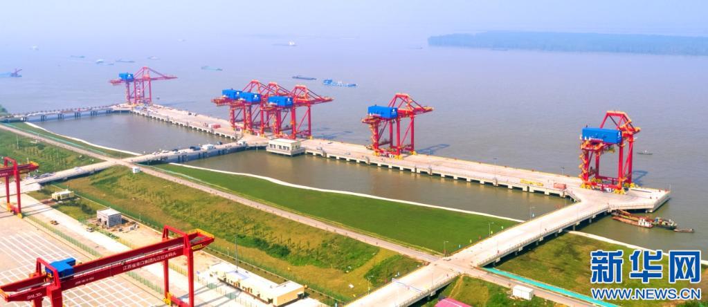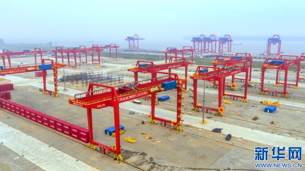 航拍九江紅光國際港。新華網(wǎng)發(fā)(江西省港口集團(tuán)供圖)