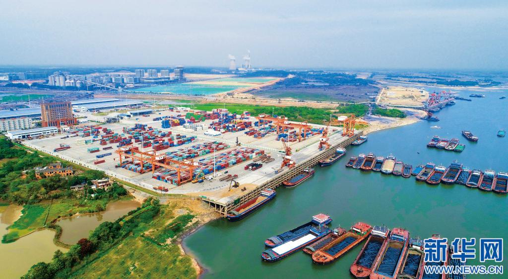 繁忙的南昌龍頭崗綜合碼頭。新華網(wǎng)發(fā)(江西省港口集團(tuán)供圖)
