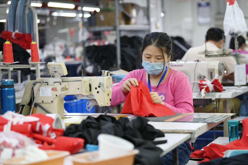 4月27日,在福建省福州市倉山區(qū)一家制衣企業(yè),工人生產(chǎn)服裝產(chǎn)品。近來,倉山區(qū)多措并舉,減稅降費減輕企業(yè)負(fù)擔(dān),助力民營工業(yè)企業(yè)高質(zhì)量發(fā)展。 新華社發(fā)(王旺旺 攝)