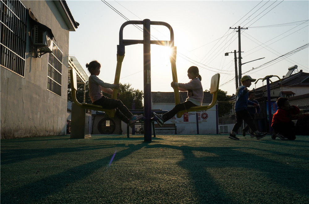 小朋友在鎮(zhèn)江市世業(yè)鎮(zhèn)永茂圩自然村的文化活動廣場玩耍(2020年4月13日攝)。新華社記者 季春鵬 攝