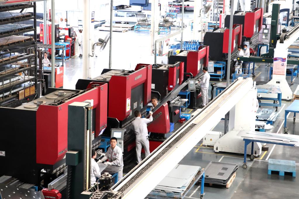 緊張生產(chǎn)中的中國西電集團西電寶雞電氣有限公司的鈑金數(shù)控折彎加工線。(受訪者供圖)