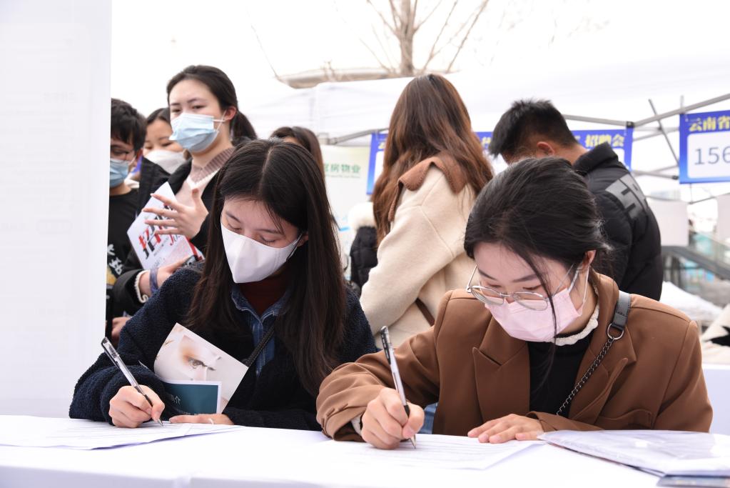 求職者在云南省舉行的招聘活動上填寫求職信息。新華社記者林碧鋒 攝