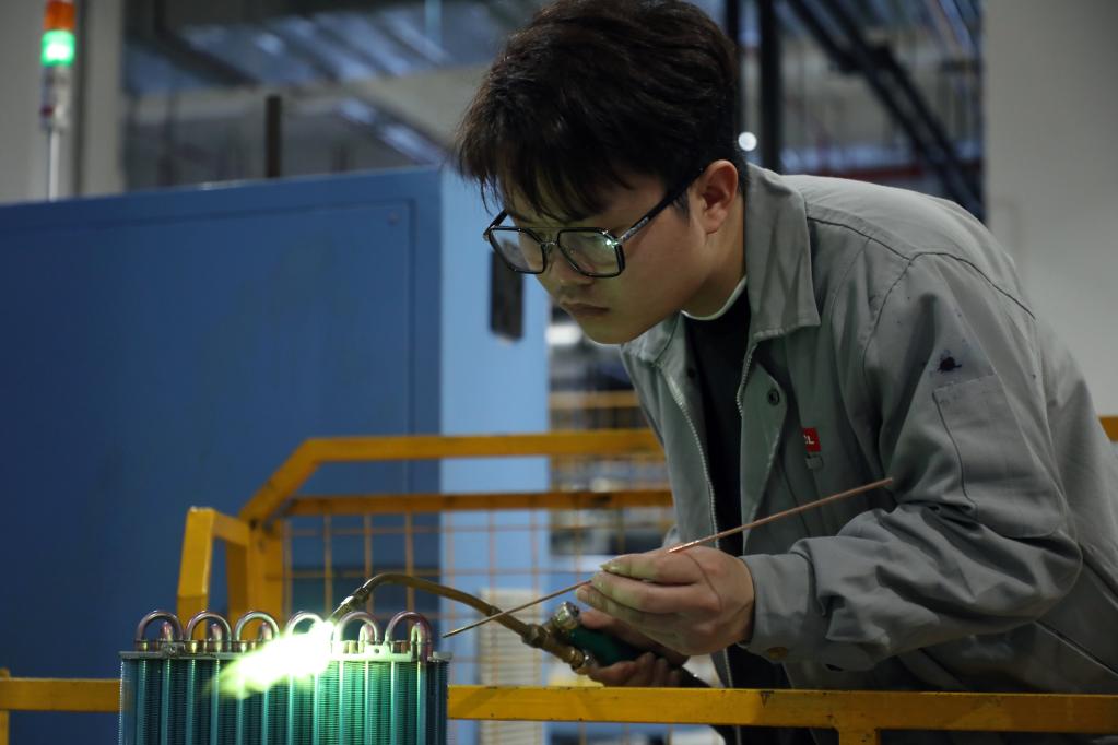 廣東中山市南頭鎮(zhèn)TCL空調(diào)制造中心員工在生產(chǎn)線作業(yè)。新華社記者黃國保 攝