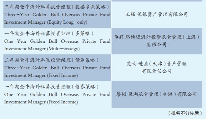 同日,第七屆海外基金金牛獎(jiǎng)榜單發(fā)布,7只海外中國基金、6家海外私募管理公司和4位投資經(jīng)理在市場的考驗(yàn)和同業(yè)的競爭中脫穎而出。