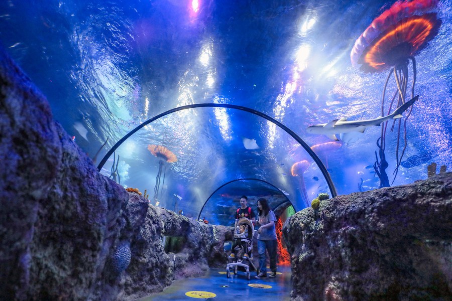 10月5日,游客在遼寧省沈陽(yáng)海洋探索中心游覽。新華社記者 龍雷 攝