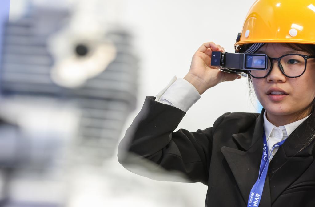 ??6月1日,昆山元宇宙產(chǎn)業(yè)園內(nèi)的亮風(fēng)臺(昆山)信息科技有限公司里,工作人員在演示AR智能穿戴設(shè)備賦能工業(yè)應(yīng)用的場景。新華社記者 楊磊 攝