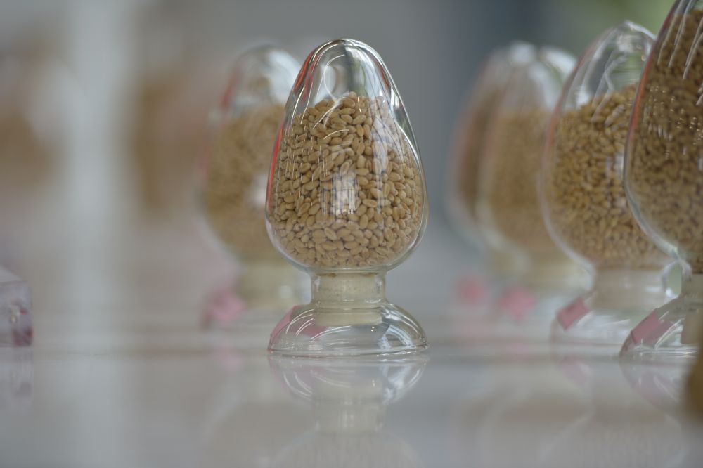 位于河南新鄉(xiāng)的中原農(nóng)谷神農(nóng)種業(yè)實(shí)驗(yàn)室里展示的種子樣本。新華社記者 劉力航 攝