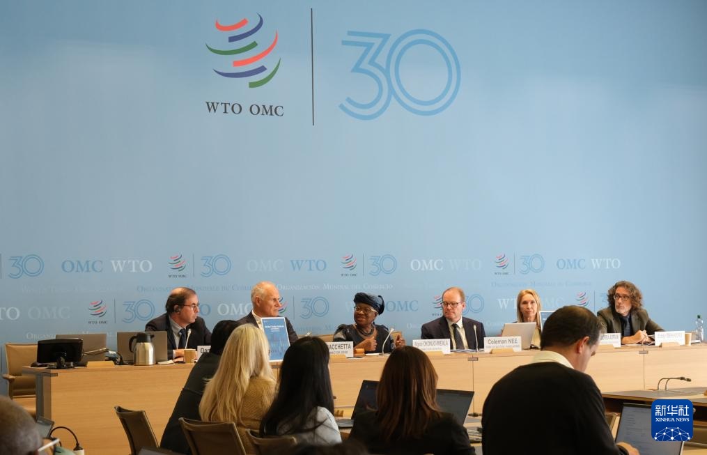??10月7日,在瑞士日內(nèi)瓦世界貿(mào)易組織總部,世貿(mào)組織總干事伊維拉(中)在新聞發(fā)布會上講話。新華社記者 馬汝軒 攝