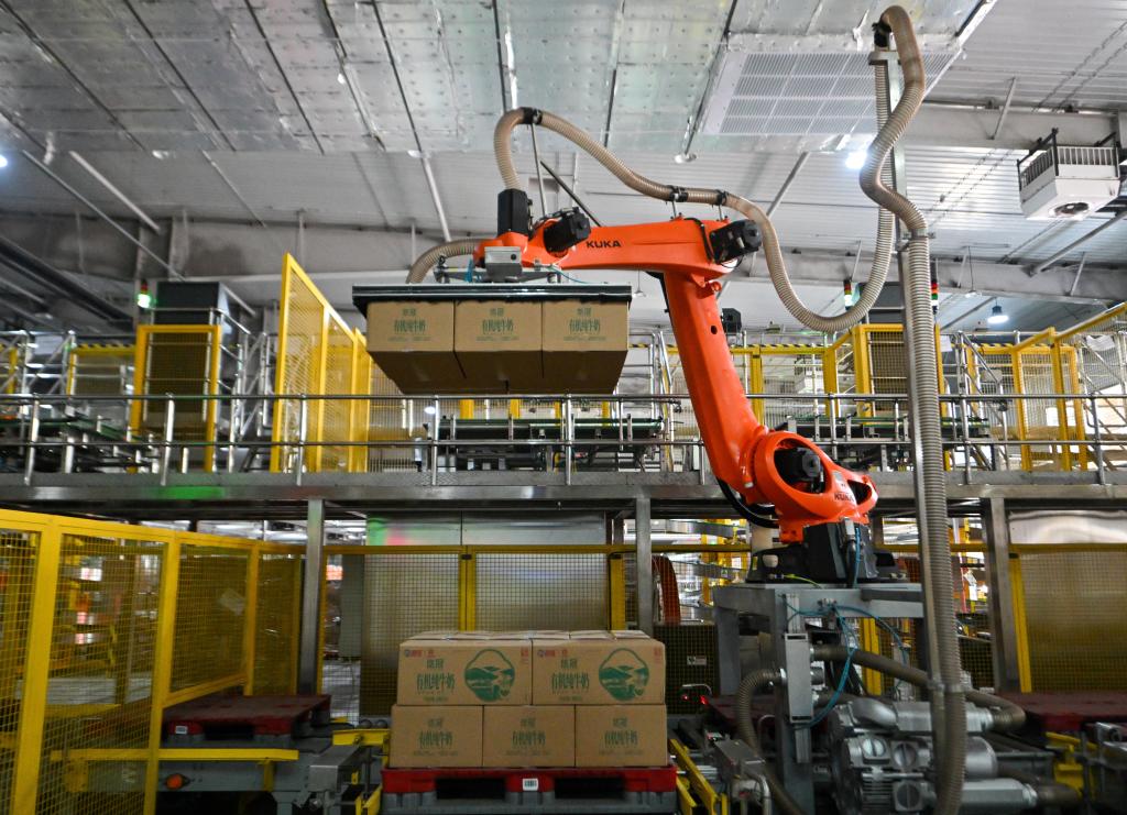 ??2月9日拍攝的天津海河乳品有限公司智能工廠內(nèi)一景。新華社記者 趙子碩 攝
