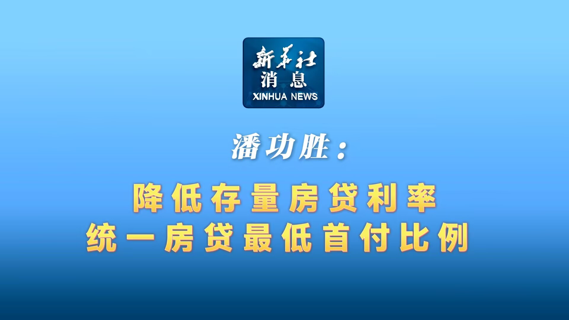 新華社消息|潘功勝:降低存量房貸利率、統(tǒng)一房貸最低首付