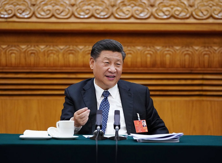 5月24日,中共中央總書記、國家主席、中央軍委主席習近平參加十三屆全國人大三次會議湖北代表團的審議。新華社記者 李學仁 攝