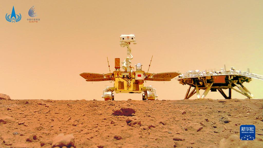這是“著巡合影”圖。2021年6月11日,國家航天局在北京舉行天問一號探測器著陸火星首批科學(xué)影像圖揭幕儀式,公布了由祝融號火星車拍攝的著陸點全景、火星地形地貌、“中國印跡”和“著巡合影”等影像圖。首批科學(xué)影像圖的發(fā)布,標(biāo)志著我國首次火星探測任務(wù)取得圓滿成功。新華社發(fā)(國家航天局供圖)