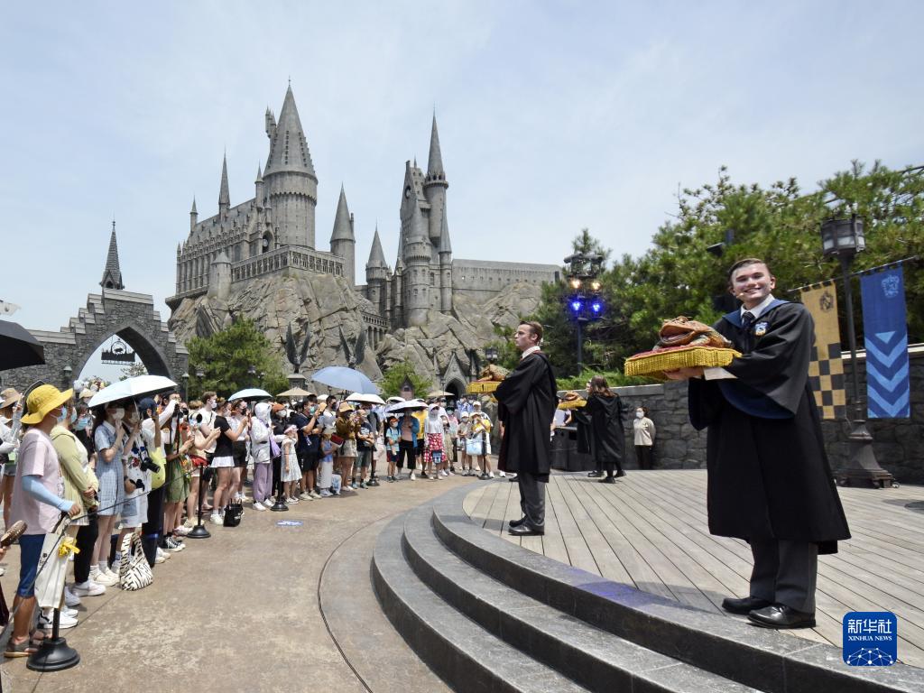游客在北京環(huán)球影城主題公園內觀看表演(2022年6月25日攝)。新華社記者 李欣 攝
