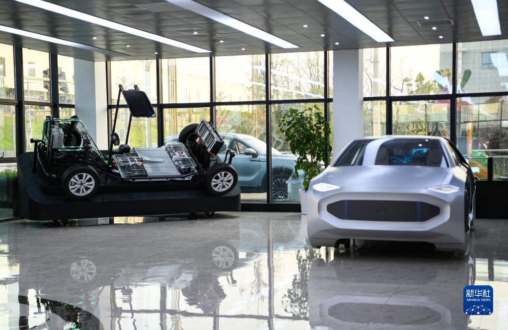 在四川省廣安市鄰水縣川渝高竹新區(qū)一家企業(yè)展廳內拍攝的展車(2021年3月24日攝)。新華社記者 王曦 攝