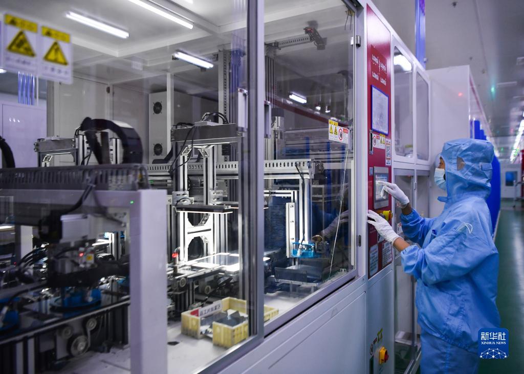 2022年7月19日,工作人員在位于陜西西安的隆基綠能科技股份有限公司單晶硅太陽能電池工廠內(nèi)調(diào)試設(shè)備。新華社記者 張博文 攝