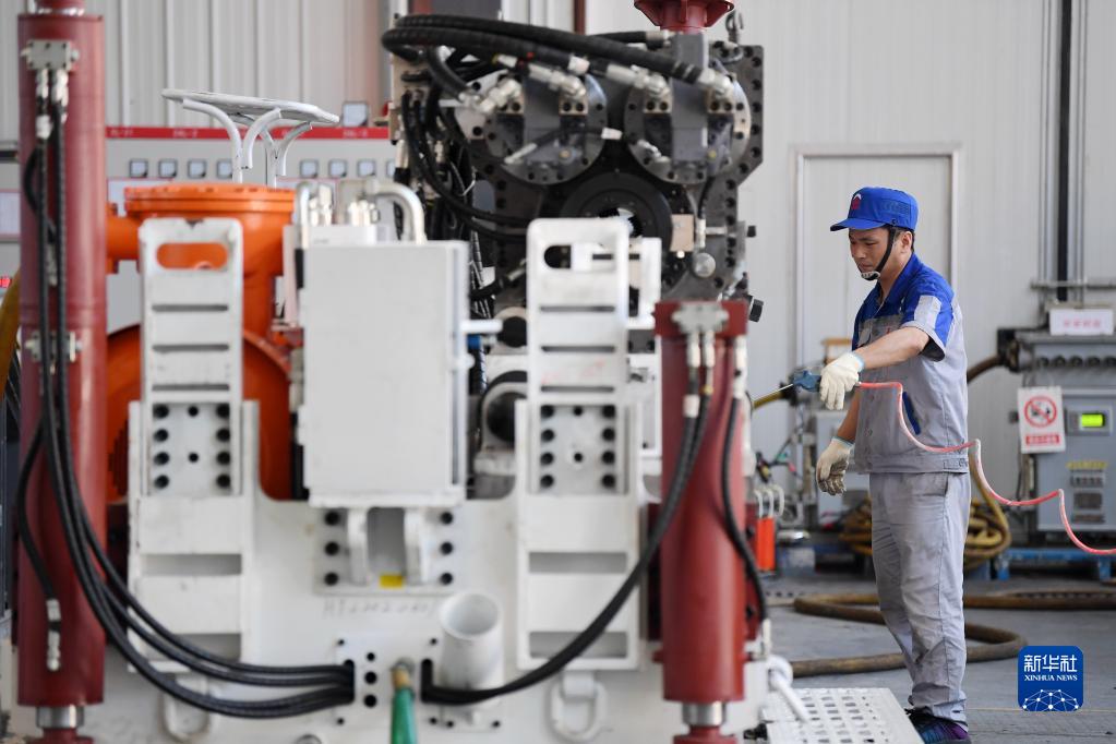 2022年6月17日,在秦創(chuàng)原總窗口所在地陜西省西咸新區(qū)的陜西太合智能鉆探有限公司,工人準備對智能定向鉆機進行性能調(diào)試。新華社記者 李一博 攝