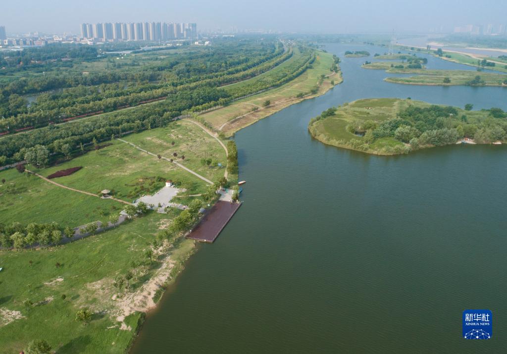 這是2022年7月31日拍攝的渭河西安段風(fēng)光(無人機照片)。新華社記者 張博文 攝
