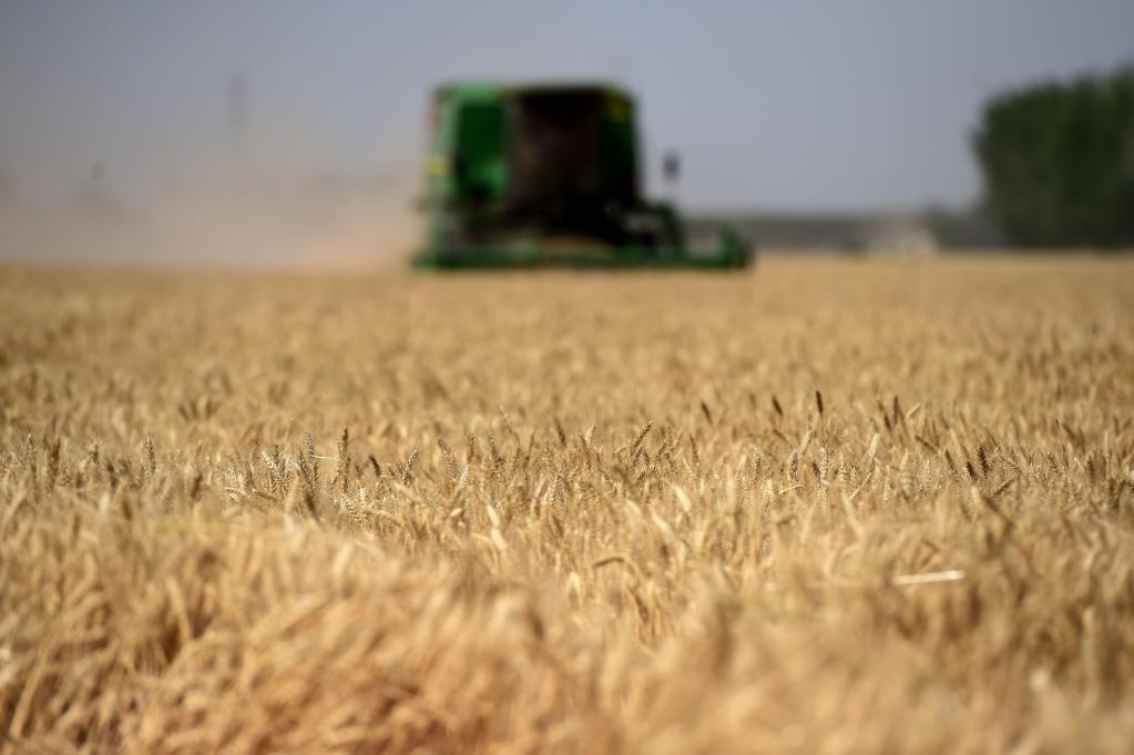 安徽省農(nóng)墾集團龍亢農(nóng)場良種繁育基地,工作人員駕駛收割機收割小麥(2021年6月7日攝)新華社記者 黃博涵 攝