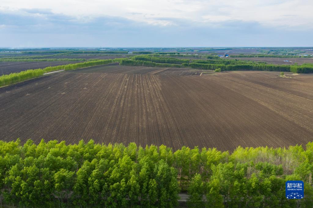 黑龍江省海倫市前進鎮(zhèn)光榮村已完成播種的黑土耕地(2022年5月23日攝,無人機照片)。新華社記者 謝劍飛 攝
