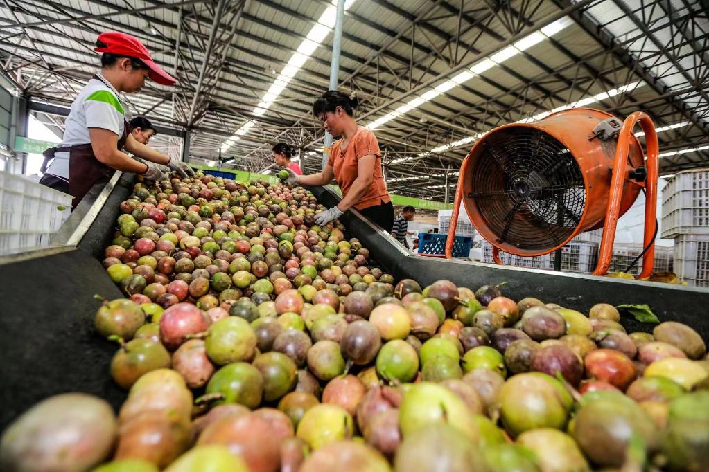 在楊興武所在的公司,工人們正在挑選百香果。受訪者供圖