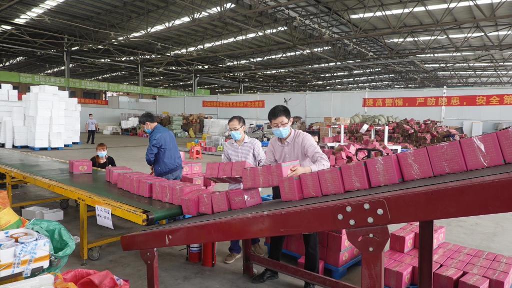 在楊興武所在的公司,工人們正在打包百香果。受訪者供圖