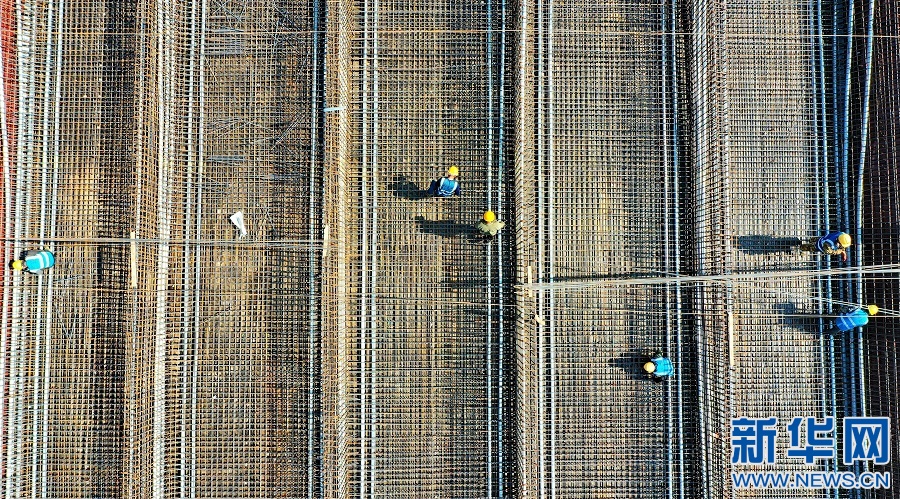 工人忙著綁扎現(xiàn)澆箱梁鋼筋。新華網發(fā) 朱海鵬 攝