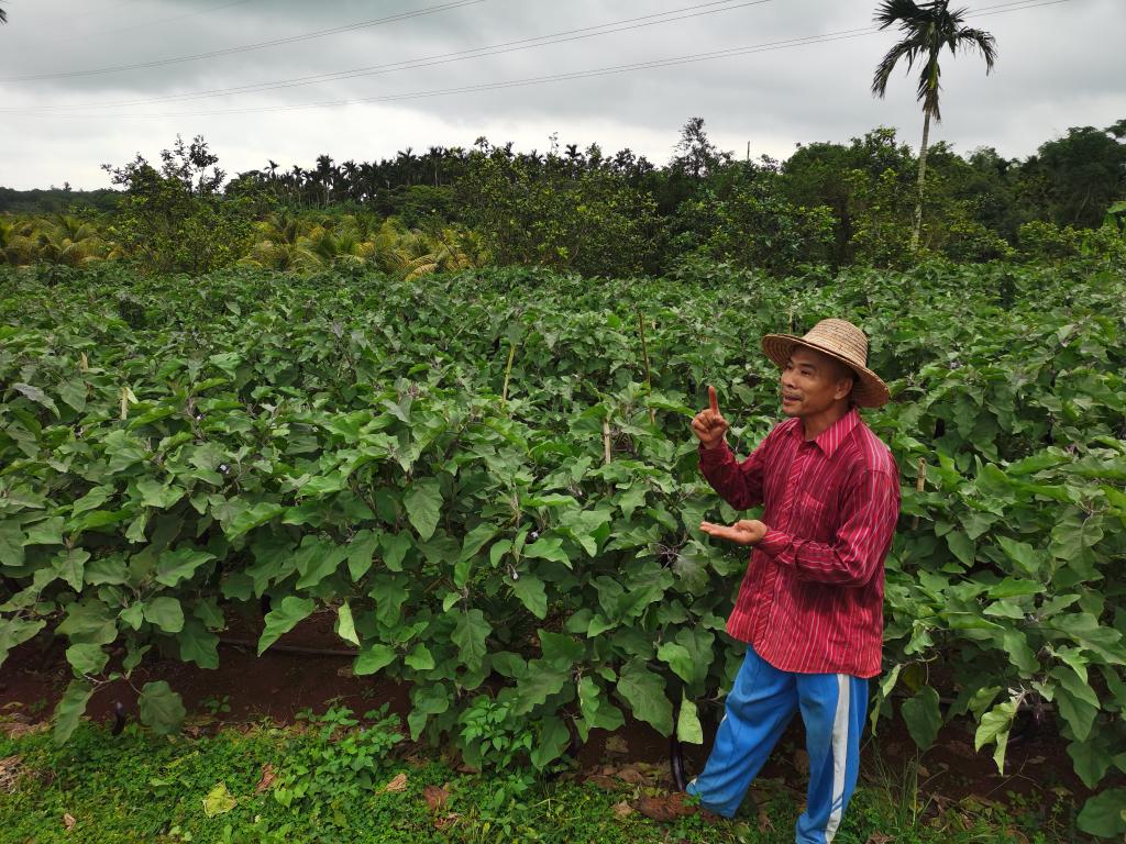 ?谑协偵絽^(qū)道崇村村民王統(tǒng)奮在介紹他種植茄子的秘訣。新華社記者趙葉蘋攝