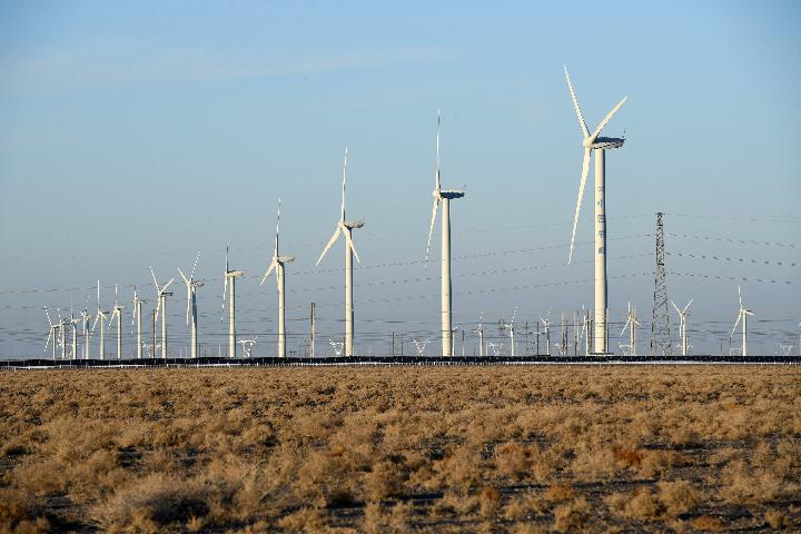中節(jié)能(甘肅)風力發(fā)電有限公司玉門昌馬風電場的風機。新華社記者范培珅 攝