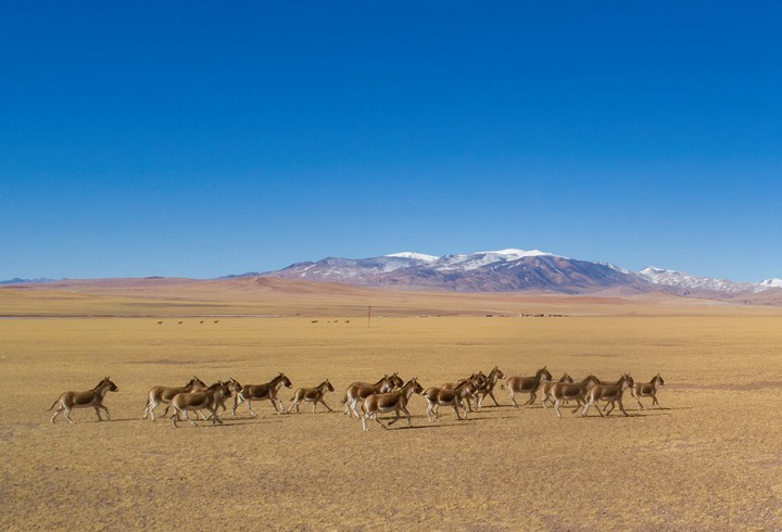 羌塘國家級自然保護(hù)區(qū)內(nèi)的藏野驢。(新華社記者孫非攝)