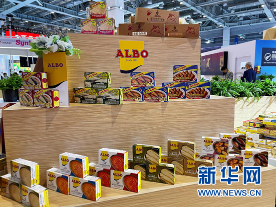 展臺陳列著多種口味的罐頭。 新華網 佘靈 攝