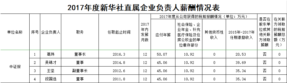 點(diǎn)擊查看2017年度新華社直屬企業(yè)負(fù)責(zé)人薪酬情況表